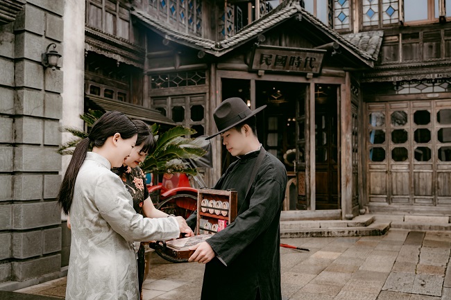 一游:穿越百年,追溯民国时代 年年岁岁花相似,乌镇的曼妙春景跨越时光行至不同的人面前,让人忍不住去揣摩,把乌镇的时间拨动回百年前,会是什么光景?在乌镇西栅的水上集市或许可以一窥究竟。 “穿越百年,追溯民国时代”风格单元包括“乌镇早茶”和“乌镇情景剧”闲游体验。“乌镇早茶”从乌镇西栅水上集市的早茶客区域延续至民国时代餐厅,囊括整个水上集市区域。驻足于此,“民国早春市”“旧时光音乐”“春光读报”“春光快闪照相馆”等民国风活动应接不暇——以江南建筑为依靠的各式摊贩遍布整个区域,民国元素融于细腻的江南美景,呈现出绝无仅有的视觉盛宴;老演艺人带来的乐器演奏声让双耳进入旧时年代;栈道旁,伴着空气中四散的春天的气味,能够嗅上今年第一波春茶带来的醇厚气息;沿街深入,去喜乐裁缝铺为自己量身定制一套旗袍;在水市口情报站聊聊天;再到春光快闪照相馆定格自己在乌镇的民国瞬间……脚踩石板路,望着江南流水,在美景中体会百年前的乌镇老底子风华;闲游至午后,漫步到草木本色染坊,《染坊那些事儿》情景剧正在上演,让游客身临其境感受民国时期乌镇商户日常生活。